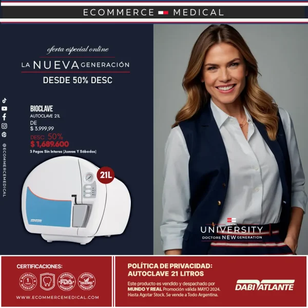 ¡Asegura la esterilización óptima con la Autoclave Dental de 21 Litros DABI ATLANTE ARGENTINA, Garantiza la seguridad de tus pacientes con este equipo de última tecnología ¡No dejes pasar esta oportunidad única de mejorar la calidad de tu práctica dental! ¡Ordena hoy mismo y disfruta de la tranquilidad que solo un producto de calidad puede brindarte!